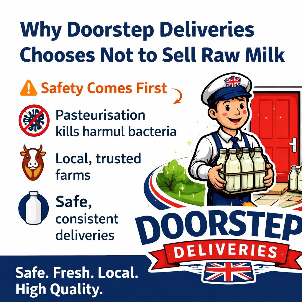 At Doorstep Deliveries, we’re proud to deliver fresh, local milk straight to your doorstep. We know some customers are curious about raw (unpasteurised) milk and why we don’t offer it — so we wanted to explain our reasons clearly, honestly, and with your wellbeing in mind.